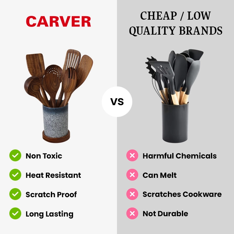 Declutter and restore serenity to your kitchen! Say goodbye to the mess and replace your worn-out silicone utensils with high-quality wooden utensils that are built to last for years.