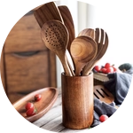 "I'm thrilled with my wooden utensils order! They look beautiful and fit perfectly on my counter. I use them every day!"